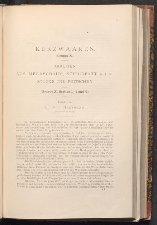 Bei aufmerkſamer Betrachtung der ausgeftellten Meerfchaum- und Bernftein Waaren kam man bald zur Ueberzeugung, dafs in der Fabrication und Behandlung der Rohproducte feit der Parifer Ausftellung 1867 ein wefentlicher Fortfchritt ftattgefunden hat.