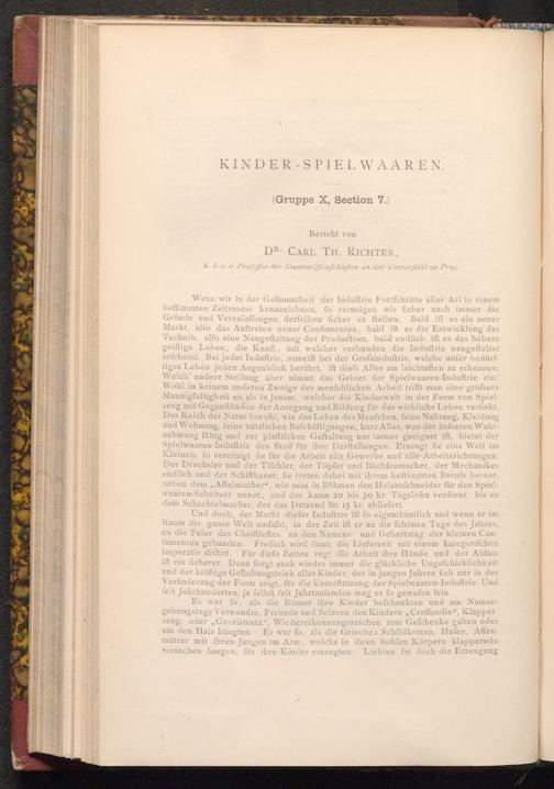 Wenn wir in der Gefammtheit der Induftrie Fortfchritte aller Art in einem beftimmten Zeitraume kennzeichnen, fo vermögen wir ficher auch immer die Gründe und Veranlaffungen derfelben ficher zu ftellen. Bald ift es ein neuer Markt, alfo das Auftreten neuer Confumenten, bald ift es die Entwicklung der Technik, alfo eine Neugeftaltung der Production, bald endlich ift es das höhere geiftige Leben, die Kunft, mit welcher verbunden die Induſtrie neugeftaltet erfcheint. Bei jeder Induftrie, zumeift bei der Grofsinduftrie, welche unfer bedürftiges Leben jeden Augenblick berührt, ift diefs Alles am leichteften zu erkennen. Welch' andere Stellung aber nimmt das Gebiet der Spielwaaren- Induftrie ein! Wohl in keinem anderen Zweige der menfchlichen Arbeit trifft man eine gröfsere Mannigfaltigkeit an als in jenem, welcher die Kinderwelt in der Form von Spiel. zeug mit Gegenftänden der Anregung und Bildung für das wirkliche Leben verfieht. Das Reich der Natur fowohl, wie das Leben des Menfchen, feine Nahrung, Kleidung und Wohnung, feine nützlichen Befchäftigungen, kurz Alles, was der äufseren Wahrnehmung fähig und zur plaftifchen Geftaltung nur immer geeignet ift, bietet der Spielwaaren- Induftrie den Stoff für ihre Darftellungen. Erzeugt fie eine Welt im Kleinen, fo vereinigt fie für die Arbeit alle Gewerbe und alle Arbeitsrichtungen. Der Drechsler und der Tifchler, der Töpfer und Büchfenmacher, der Mechaniker endlich und der Schiffbauer, fie treten dabei mit ihrem beftimmten Berufe hervor, neben dem„, Aftelmacher", wie man in Böhmen den Holzzufchneider für den Spielwaaren- Schnitzer nennt, und der kaum 20 bis 30 kr. Tagelohn verdient, bis zu dém Schachtelmacher, der das Dutzend für 15 kr. abliefert.