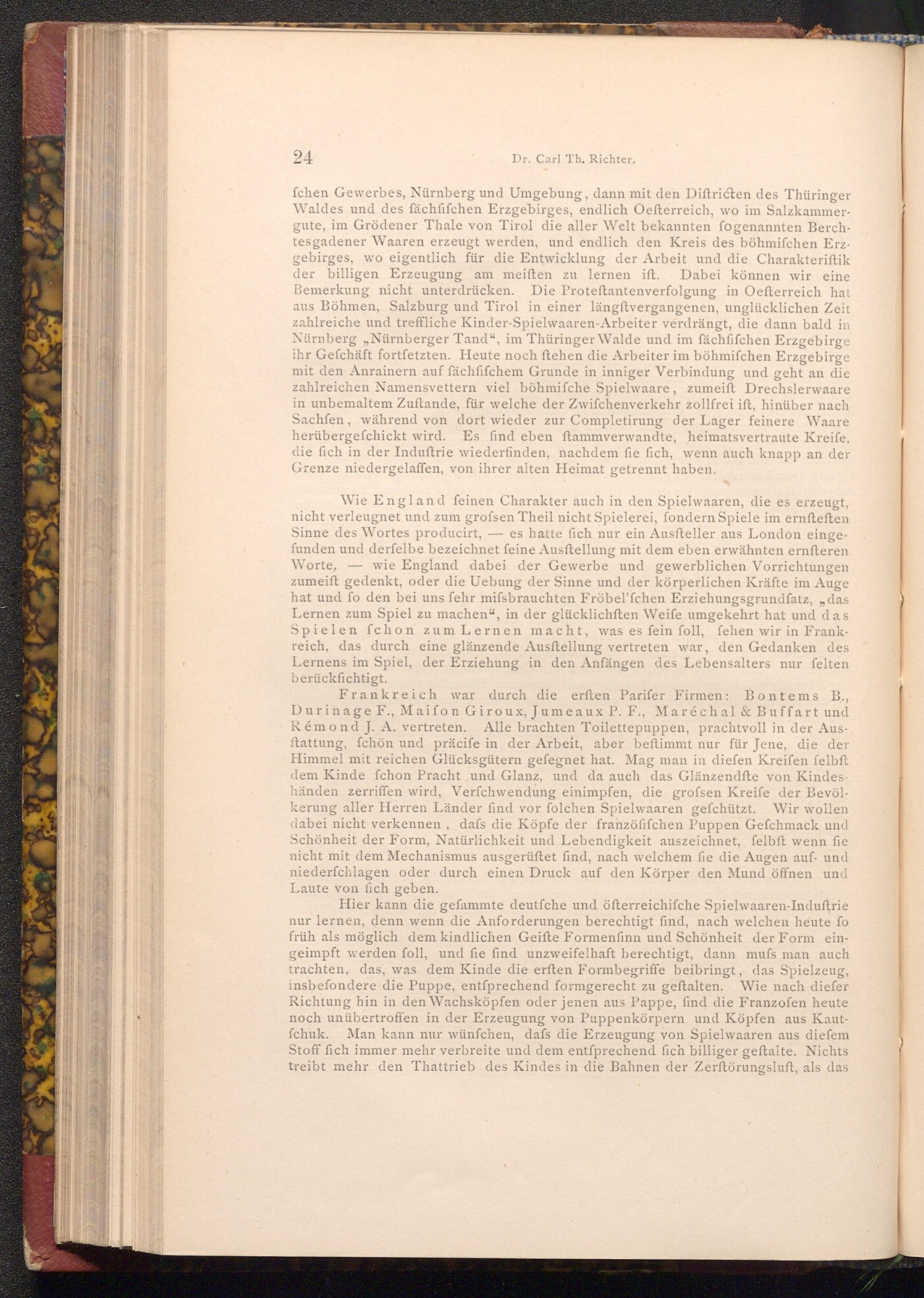 Wie England feinen Charakter auch in den Spielwaaren, die es erzeugt, nicht verleugnet und zum grofsen Theil nicht Spielerei, fondern Spiele im ernſteften Sinne des Wortes producirt,-es hatte fich nur ein Ausfteller aus London eingefunden und derfelbe bezeichnet feine Ausstellung mit dem eben erwähnten ernſteren Worte, wie England dabei der Gewerbe und gewerblichen Vorrichtungen zumeift gedenkt, oder die Uebung der Sinne und der körperlichen Kräfte im Auge hat und fo den bei uns fehr mifsbrauchten Fröbel'fchen Erziehungsgrundfatz ,,, das Lernen zum Spiel zu machen", in der glücklichften Weife umgekehrt hat und das Spielen fchon zum Lernen macht, was es fein foll, fehen wir in Frankreich, das durch eine glänzende Ausftellung vertreten war, den Gedanken des Lernens im Spiel, der Erziehung in den Anfängen des Lebensalters nur felten berücksichtigt.