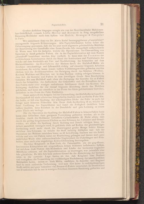 Grofses Auffehen hingegen erregte ein von der Karolinenthaler Maſchinenbau Gefellfchaft, vormals Lüffe Märky und Bernard in Prag ausgeftellten Ganzzeug- Holländer nach dem Syftem von Debié, Granger& Pasquier