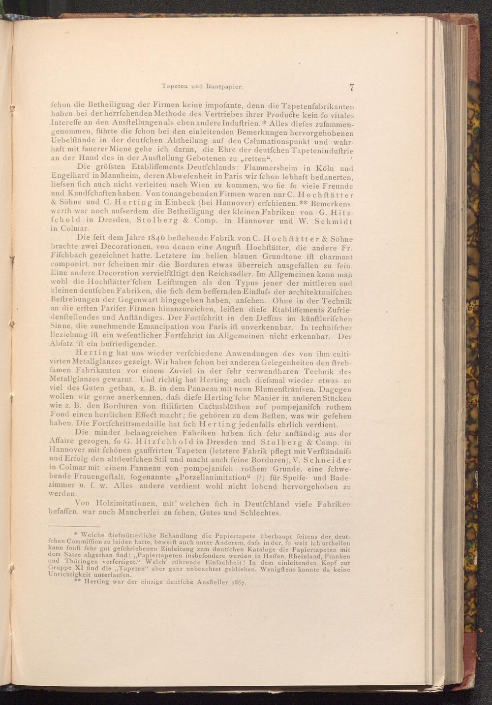 Die gröfsten Etabliffements Deutfchlands: Flammersheim in Köln und Engelhard in Mannheim, deren Abwefenheit in Paris wir fchon lebhaft bedauerten, liefsen fich auch nicht verleiten nach Wien zu kommen, wo fie fo viele Freunde und Kundfchaften haben. Von tonangebenden Firmen waren nur C. Hochftätter & Söhne und C. Herting in Einbeck( bei Hannover) erfchienen.** Bemerkens werth war noch aufserdem die Betheiligung der kleinen Fabriken von G. Hitzfchold in Dresden, Stolberg& Comp. in Hannover und W. Schmidt