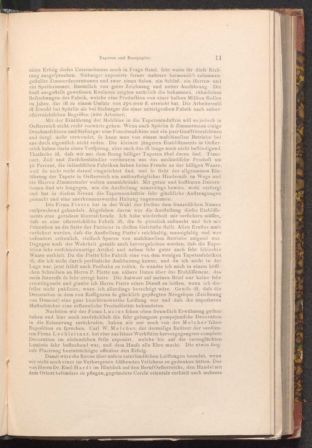 Damit wäre die Revue über unfere vaterländifchen Leiftungen beendet, wenn wir nicht noch eines im Verborgenen blühenden Veilchens zu gedenken hätten. Der von Herrn Dr. Emil Hardt im Hinblick auf den Beruf Oefterreichs, den Handel mit dem Orient befonders zu pflegen, gegründete Cercle orientale enthielt auch mehrere