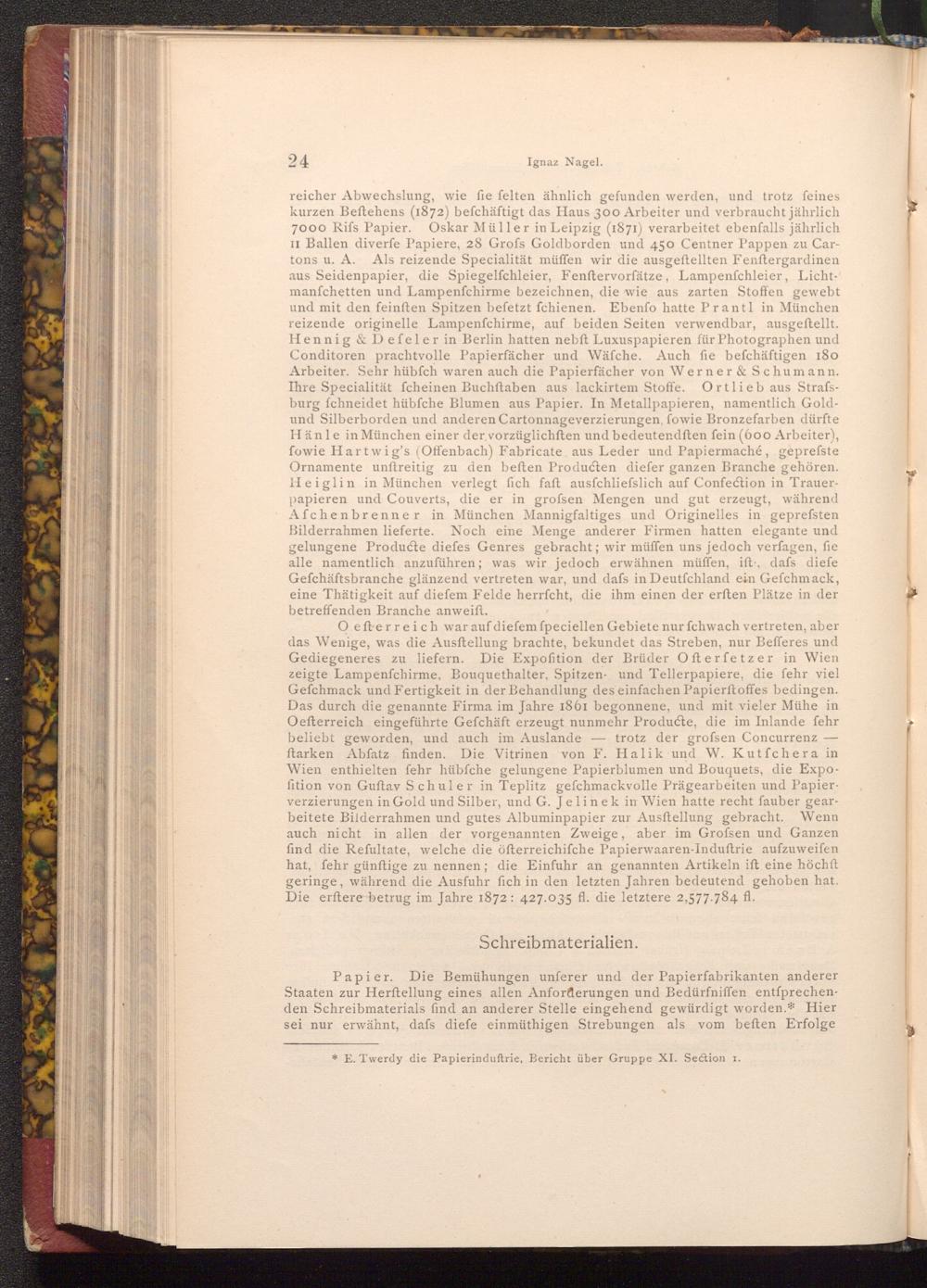 * E. Twerdy die Papierinduftrie, Bericht über Gruppe XI. Section 1.