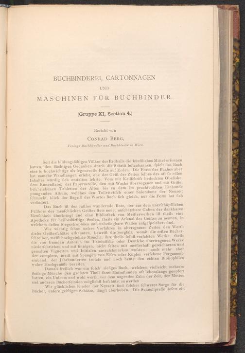Wie wichtig fchon unfere Vorfahren in altersgrauen Zeiten den Werth diefer Geiftesfchätze erkannten, beweift die Sorgfalt, womit die erften Bücherfchreiber, meift hochgelehrte Mönche, ihre theils felbft verfafsten Werke, theils die von fremden Autoren ins Lateinifche oder Deutfche übertragenen Werke niederfchrieben und mit finnigen, nicht felten mit meifterhaft gezeichneten und gemalten Vignetten und Initialen auszufchmücken wufsten; noch mehr aber der complete, meift mit Spangen von Eifen oder Kupfer verfehene Pergamenteinband, der Jahrhunderten trotzte und noch heute den echten Bibliophilen wahre Hochgenüffe bereitet.