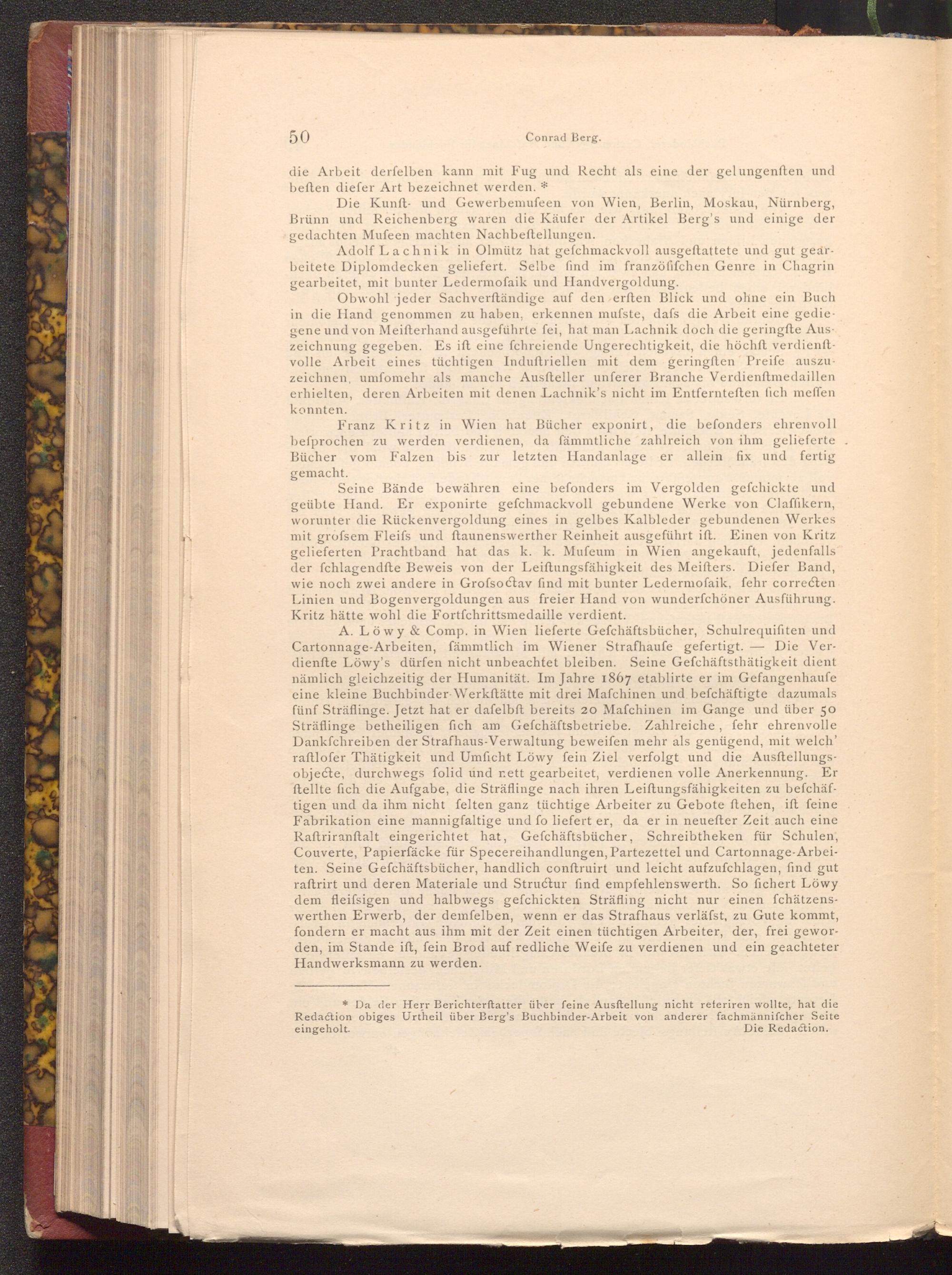 * Da der Herr Berichterstatter über feine Ausftellung nicht referiren wollte, hat die Redaction obiges Urtheil über Berg's Buchbinder- Arbeit von anderer fachmännischer Seite eingeholt. Die Redaction.