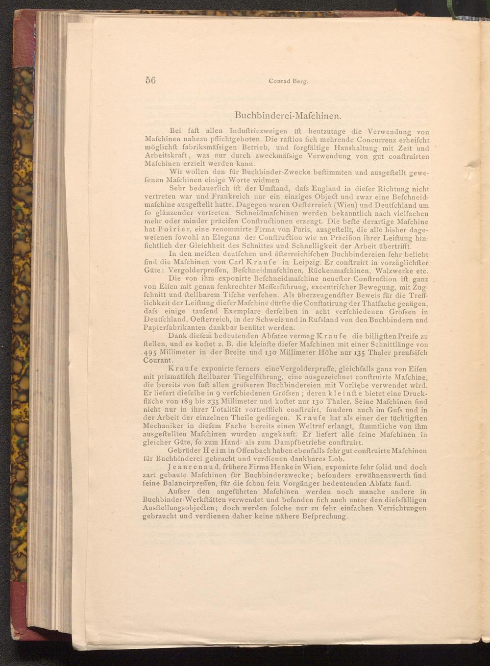 Gebrüder Heim in Offenbach haben ebenfalls fehr gut conftruirte Mafchinen für Buchbinderei gebracht und verdienen dankbares Lob.