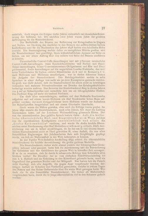 In der Parifer Welt- Induftrie- Ausftellung 1855 erhielt die öfterreichifche Staatsdruckerei die höchfte Auszeichnung: die grofse goldene Medaille.