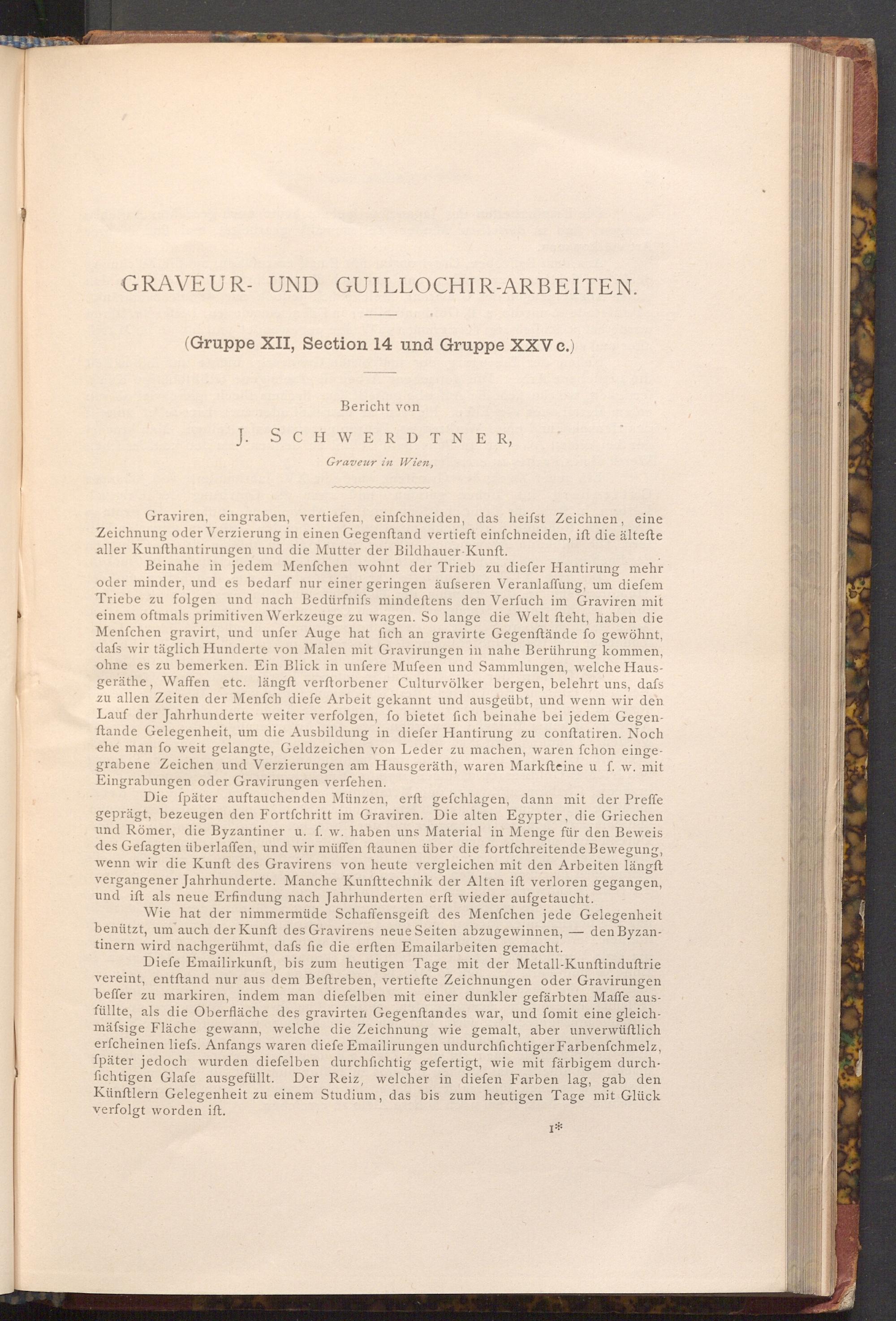 Beinahe in jedem Menfchen wohnt der Trieb zu diefer Hantirung mehr oder minder, und es bedarf nur einer geringen äufseren Veranlaffung, um diefem Triebe zu folgen und nach Bedürfnifs mindeſtens den Verfuch im Graviren mit einem oftmals primitiven Werkzeuge zu wagen. So lange die Welt fteht, haben die Menfchen gravirt, und unfer Auge hat fich an gravirte Gegenftände fo gewöhnt, dafs wir täglich Hunderte von Malen mit Gravirungen in nahe Berührung kommen, ohne es zu bemerken. Ein Blick in unfere Mufeen und Sammlungen, welche Hausgeräthe, Waffen etc. längft verftorbener Culturvölker bergen, belehrt uns, dafs zu allen Zeiten der Menfch diefe Arbeit gekannt und ausgeübt, und wenn wir den Lauf der Jahrhunderte weiter verfolgen, fo bietet fich beinahe bei jedem Gegenftande Gelegenheit, um die Ausbildung in diefer Hantirung zu conftatiren. Noch ehe man fo weit gelangte, Geldzeichen von Leder zu machen, waren fchon eingegrabene Zeichen und Verzierungen am Hausgeräth, waren Markſteine u f. w. mit Eingrabungen oder Gravirungen verfehen.