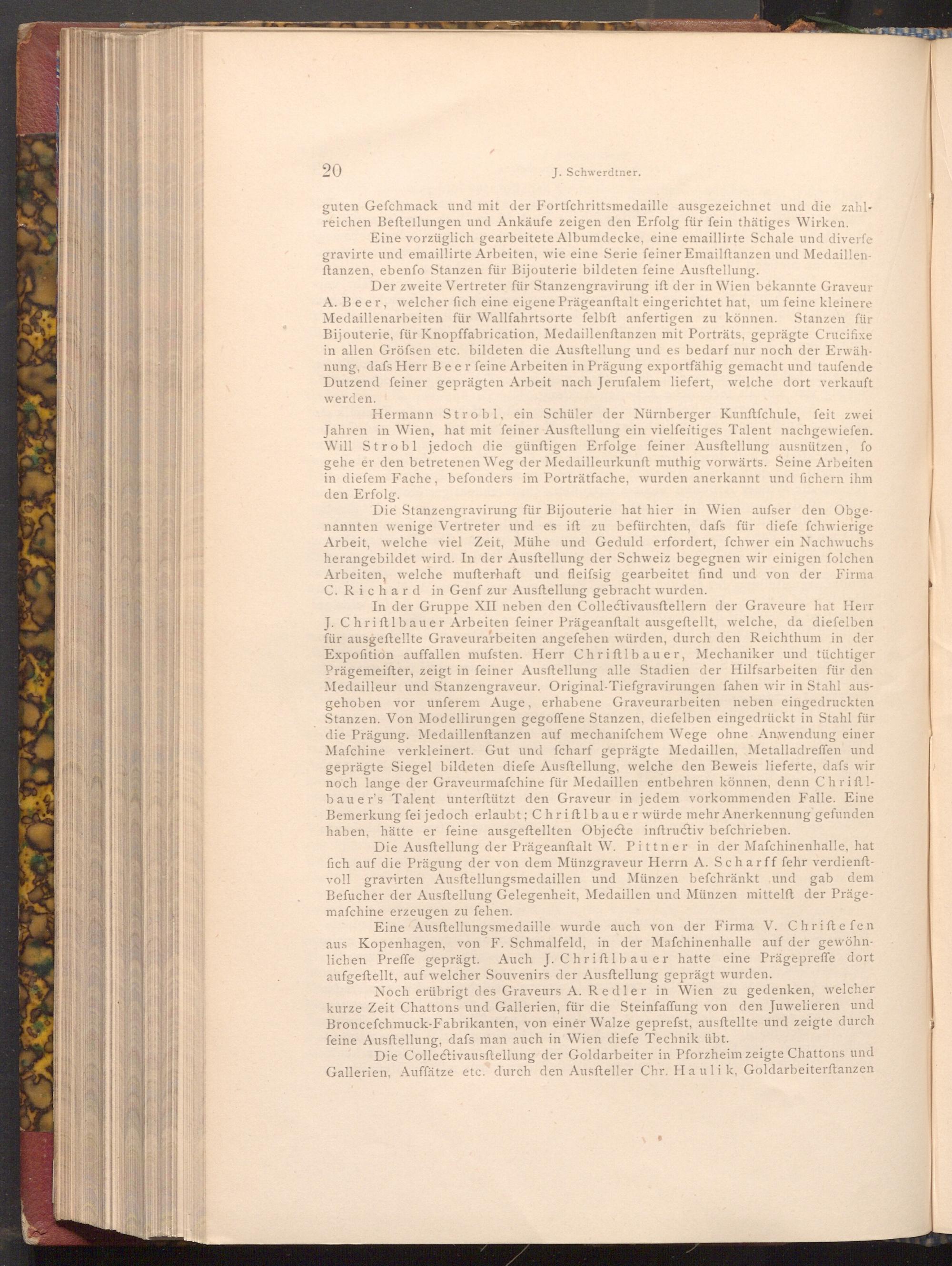 Eine vorzüglich gearbeitete Albumdecke, eine emaillirte Schale und diverfe gravirte und emaillirte Arbeiten, wie eine Serie feiner Emailftanzen und Medaillenftanzen, ebenfo Stanzen für Bijouterie bildeten feine Ausftellung.