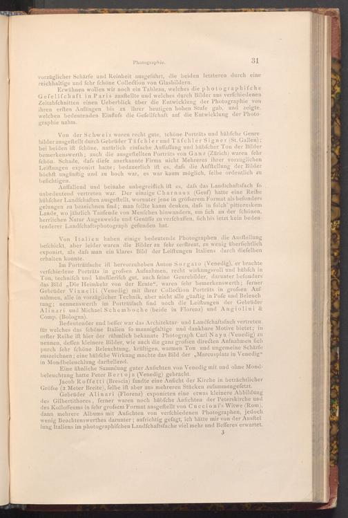 Von Italien haben einige bedeutende Photographen die Ausftellung befchickt, aber leider waren die Bilder zu fehr zerftreut, zu wenig überfichtlich exponirt, als dafs man ein klares Bild der Leiftungen Italiens durch diefelben erhalten konnte.