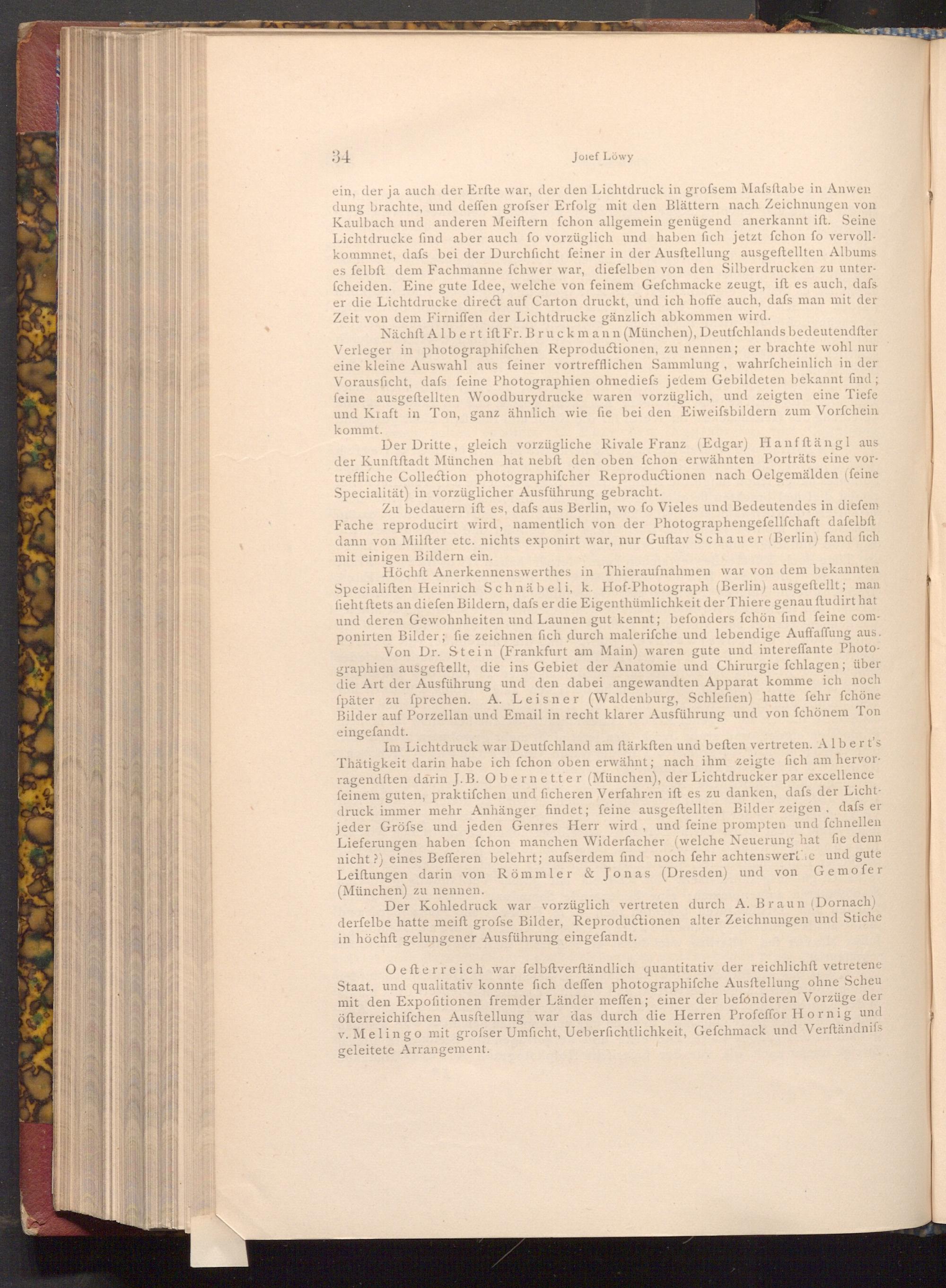 Oefterreich war felbftverftändlich quantitativ der reichlichft vetretene Staat, und qualitativ konnte fich deffen photographifche Ausftellung ohne Scheu mit den Expofitionen fremder Länder meffen; einer der befónderen Vorzüge der öfterreichifchen Ausftellung war das durch die Herren Profeffor Hornig und v. Melingo mit grofser Umficht, Ueberfichtlichkeit, Gefchmack und Verſtändniss geleitete Arrangement.