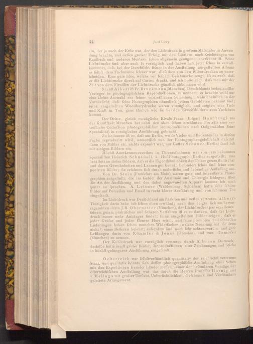 Im Lichtdruck war Deutfchland am ftärksten und beften vertreten. Albert's Thätigkeit darin habe ich fchon oben erwähnt; nach ihm zeigte fich am hervor ragendften darin J. B. Obernetter( München), der Lichtdrucker par excellence feinem guten, praktiſchen und ficheren Verfahren ift es zu danken, dafs der Lichtdruck immer mehr Anhänger findet; feine ausgeftellten Bilder zeigen, dafs er jeder Gröfse und jeden Genres Herr wird, und feine prompten und fchnellen Lieferungen haben fchon manchen Widerfacher( welche Neuerung hat fie denn nicht?) eines Befferen belehrt; aufserdem find noch fehr achtenswerte und gute Gemofer Leiftungen darin von Römmler& Jonas( Dresden) und von ( München) zu nennen. Der Kohledruck war vorzüglich vertreten durch A. Braun( Dornach) derfelbe hatte meift grofse Bilder, Reproductionen alter Zeichnungen und Stiche in höchft gelungener Ausführung eingefandt.