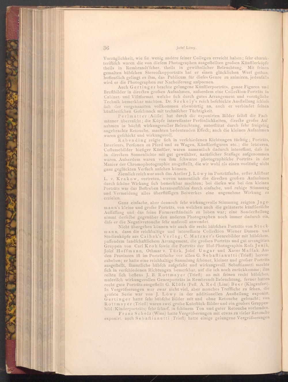 Ziemlich reich war auch das Atelier J. Löwy im Porträtfache, erfter Affiftent L. v. Krakow, vertreten, wovon namentlich die directen grofsen Aufnahmen durch fchöne Wirkung fich bemerkbar machten; bei diefen wie bei den kleinen Porträts war das Beftreben herauszufühlen durch einfache, und ruhige Stimmung und Vermeidung alles überflüffigen Beiwerkes eine angenehme Wirkung zu erzielen.