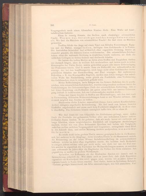 Meine Befürchtungen, mein Bangen um das fernere Beftehen des fo poefie reichen, rein orientalifchen Gefchmackes, wurden einigermafsen zerftreut durch die Verficherungen des liebenswürdigen Chefs der orientalifchen Abtheilung, dafs er bei feiner Regierung ein Fefthalten am guten alten Stile aus innerer Ueberzeugung lebhaft zu befürworten, fich zur Lebensaufgabe machen wolle.