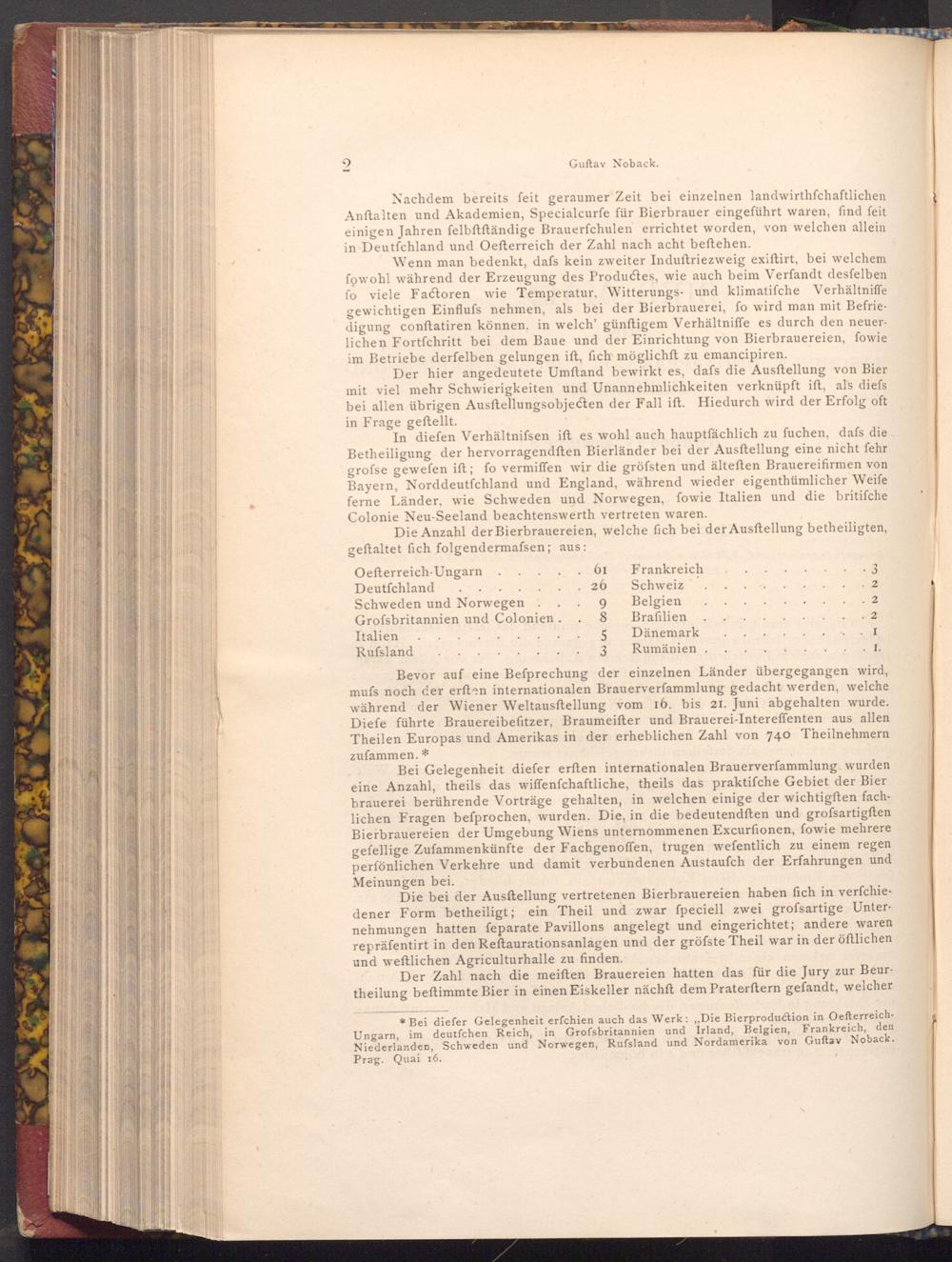 * Bei diefer Gelegenheit erfchien auch das Werk: ,, Die Bierproduction in OefterreichUngarn, im deutfchen Reich, in Grofsbritannien und Irland, Belgien, Frankreich, den Niederlanden, Schweden und Norwegen, Rufsland und Nordamerika von Guftav Noback. Prag. Quai 16.