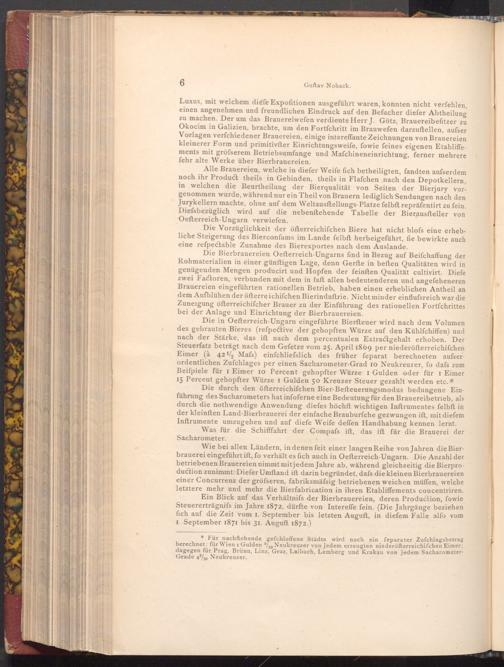 Die durch den öfterreichifchen Bier- Befteuerungsmodus bedungene Einführung des Sacharometers hat infoferne eine Bedeutung für den Brauereibetrieb, als durch die nothwendige Anwendung diefes höchft wichtigen Inftrumentes felbft in der kleinften Land- Bierbrauerei der einfache Brauburfche gezwungen ift, mit diefem Inftrumente umzugehen und auf diefe Weife deffen Handhabung kennen lernt. Was für die Schifffahrt der Compafs ift, das ift für die Brauerei der Sacharometer.