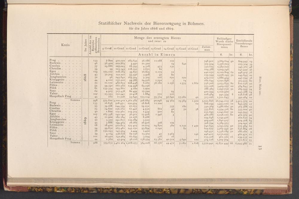 Statiftifcher Nachweis der Biererzeugung in Böhmen.