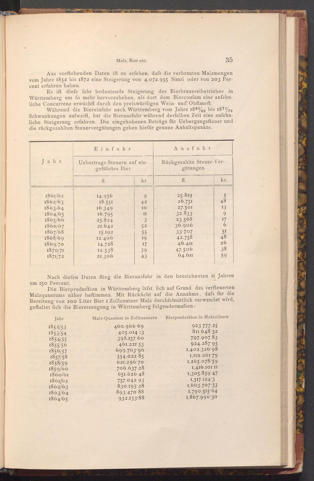Aus vorſtehenden Daten ift zu erfehen, dafs die verbrauten Malzmengen vom Jahre 1852 bis 1872 eine Steigerung von 4,072.955 Simri oder von 203 Percent erfahren haben.