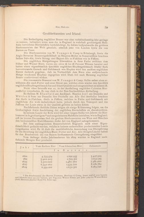 Die Bierbrauereien von W. Younger& Comp in Edinburgh, fowie die Anglo Bavarian Brauereigefellſchaft zu Shepton- Mallet in Somersetſhire brachten Indian Pale Ale, fowie Strong. und Export- Ale in Flafchen wie in Fäffern.