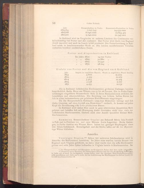* Die Bierproduction und Einnahme im Königreich Polen find hier nicht inbegriffen. ** Obgleich keine Brauerei der Vereinigten Staaten fich bei der Ausftellung betheiligte, fo halte ich es doch für fachgemäfs, einige Daten über die dortigen Bier- Productionsverhältniffe anzuführen und diefs um fo mehr, da der Auffchwung der Bierbrauerei in diefem Lande ein hochft beachtenswerther ift.