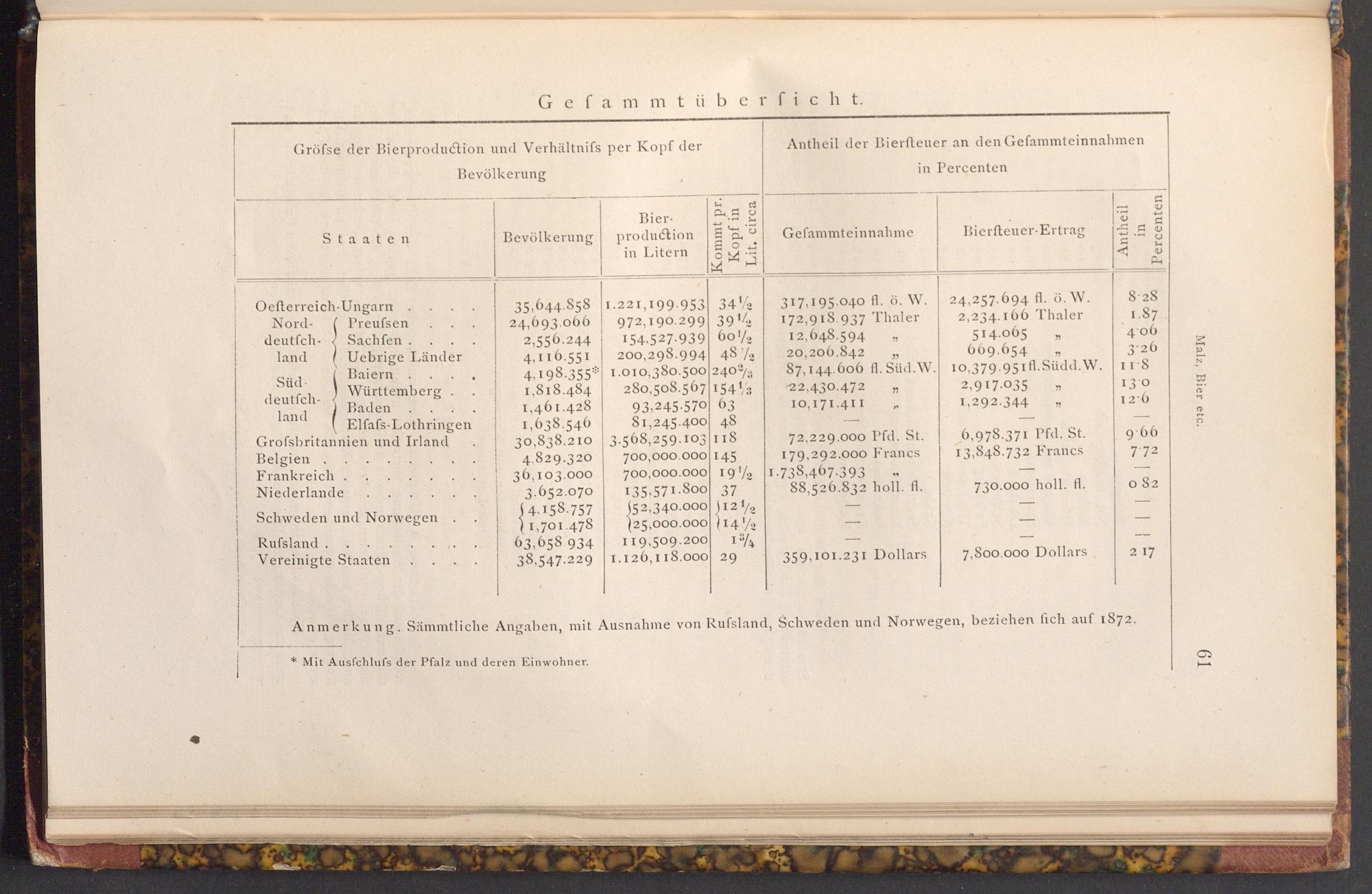 Gröfse der Bierproduction und Verhältnifs per Kopf der