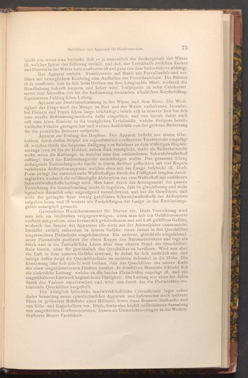 Apparat zur Dextrinbeftimmung in der Würze und dem Biere. Die Wichtigkeit der Frage nach der Menge im Bier und der Würze enthaltenen Dextrins, hat Theorie und Praxis fchon lange befchäftigt; indefs erft in neuerer Zeit hat fich eine exacte Beftimmungsmethode dafür eingeführt, und von hierab datirt auch erft eine klare Einficht in die bezüglichen Verhältniffe, welche übrigens bereits vielfache Früchte getragen hat und weiters Auffchlüffe von der gröfsten Bedeutung für die praktiſche Brauerei verſpricht.