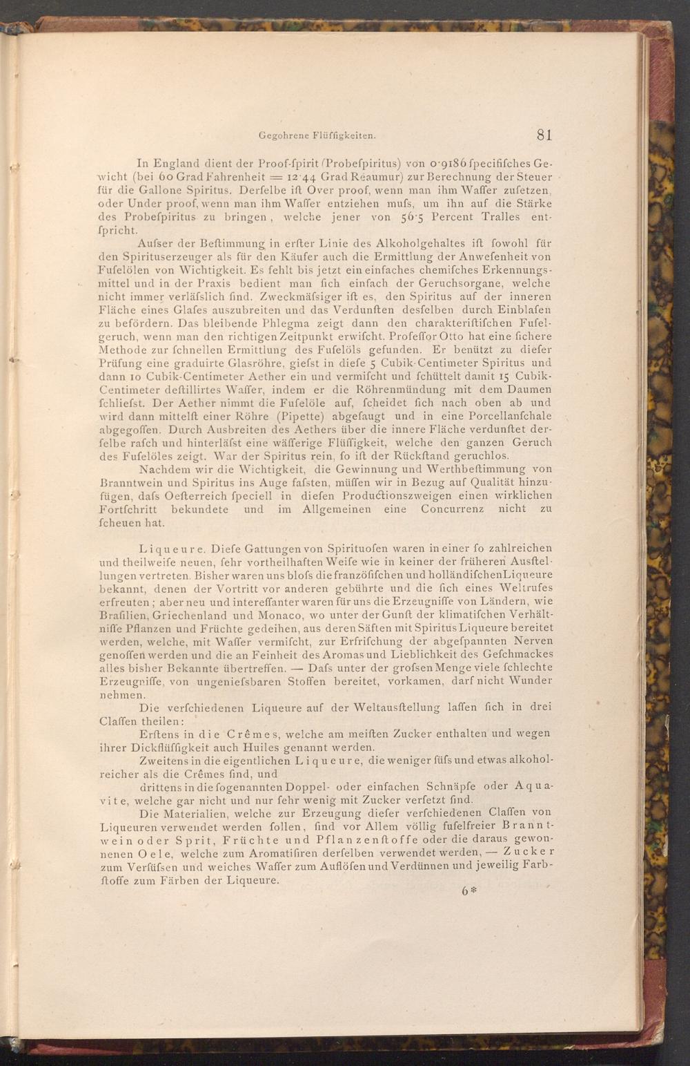 Nachdem wir die Wichtigkeit, die Gewinnung und Werthbeftimmung von Branntwein und Spiritus ins Auge fafsten, müffen wir in Bezug auf Qualität hinzu. fügen, dafs Oefterreich ſpeciell in diefen Productionszweigen einen wirklichen Fortfchritt bekundete und im Allgemeinen eine Concurrenz nicht zu fcheuen hat.