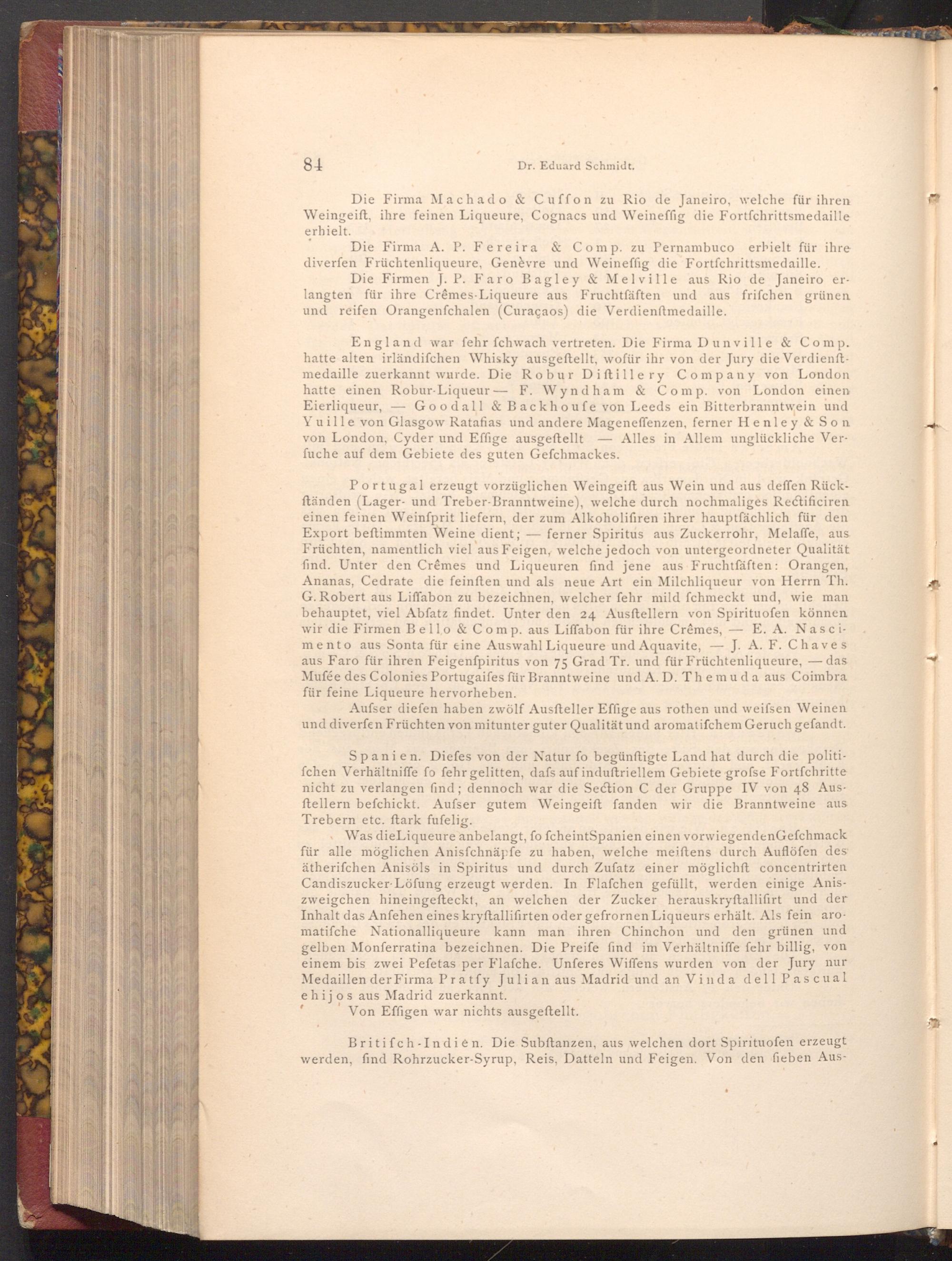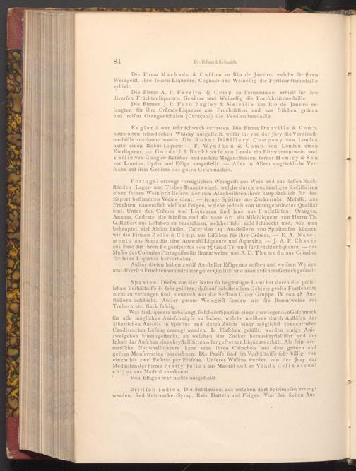 Die Firma Machado& Cuffon zu Rio de Janeiro, welche für ihren Weingeift, ihre feinen Liqueure, Cognacs und Weineffig die Fortfchrittsmedaille erhielt.