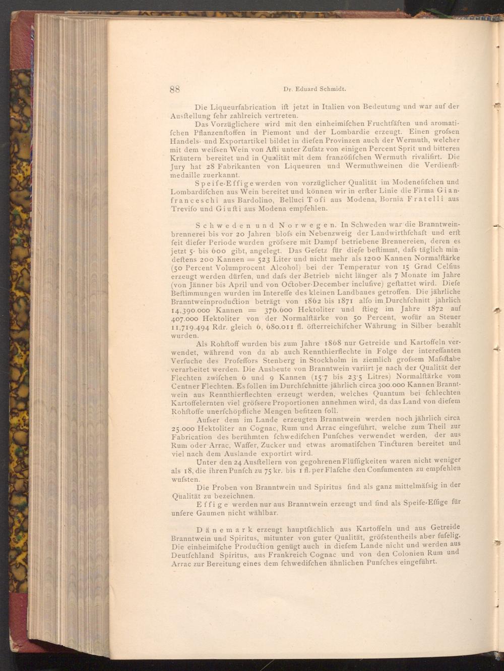 Das Vorzüglichere wird mit den einheimifchen Fruchtfäften und aromatifchen Pflanzenftoffen in Piemont und der Lombardie erzeugt. Einen grofsen Handels- und Exportartikel bildet in diefen Provinzen auch der Wermuth, welcher mit dem weifsen Wein von Afti unter Zufatz von einigen Percent Sprit und bitteren. Kräutern bereitet und in Qualität mit dem franzöfifchen Wermuth rivalifirt. Die Jury hat 28 Fabrikanten von Liqueuren und Wermuthweinen die Verdienftmedaille zuerkannt.