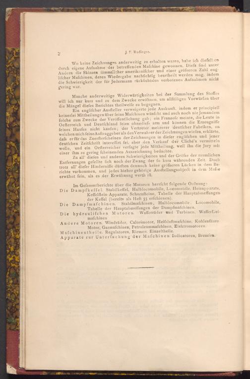 Ein englifcher Ausfteller verweigerte jede Auskunft, indem er principiell keinerlei Mittheilungen über feine Mafchinen wünſcht und auch noch nie Jemandem folche zum Zwecke der Veröffentlichung gab; ein Franzofe meinte, die Leute in Oefterreich und Deutfchland feien ohnediefs arm und können die Erzeugniffe feines Haufes nicht kaufen; der Vertreter mehrerer deutfcher Fabriken, an welchen mich feine Auftraggeber als den Verwahrer der Zeichnungen wiefen, erklärte, dafs er für das Zuerfterfcheinen der Zeichnungen in diefer englifchen und jener deutfchen Zeitfchrift intereffirt fei, aber den Verkauf der Cliché's vermitteln. wolle, und ein Oefterreicher verfagte jede Mittheilung, weil ihn die Jury mit einer ihm zu gering fcheinenden Auszeichnung bedachte.