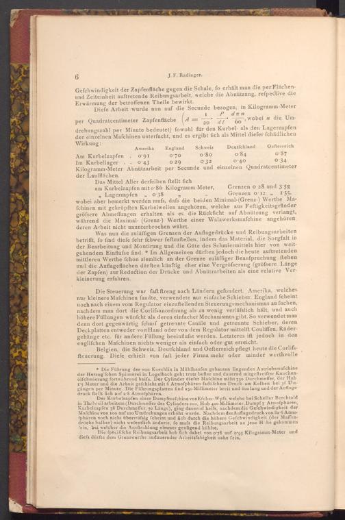 drehungszahl per Minute bedeutet) fowohl für den Kurbel als den Lagerzapfen der einzelnen Maschinen unterfucht, und es ergibt fich als Mittel diefer fchädlichen