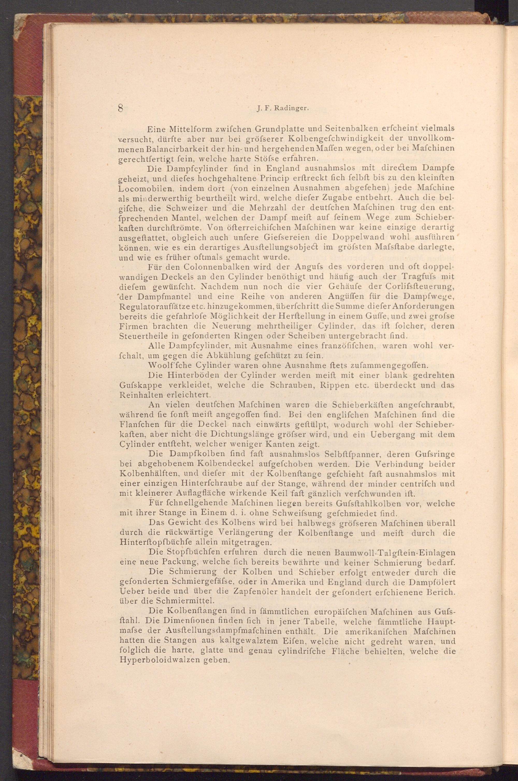 Die Dampfcylinder find in England ausnahmslos mit directem Dampfe geheizt, und diefes hochgehaltene Princip erftreckt fich felbft bis zu den kleinften Locomobilen, indem dort( von einzelnen Ausnahmen abgefehen) jede Mafchine als minderwerthig beurtheilt wird, welche diefer Zugabe entbehrt. Auch die belgifche, die Schweizer und die Mehrzahl der deutfchen Maſchinen trug den entfprechenden Mantel, welchen der Dampf meift auf feinem Wege zum Schieberkaften durchftrömte. Von öfterreichifchen Mafchinen war keine einzige derartig ausgeftattet, obgleich auch unfere Giefsereien die Doppelwand wohl ausführen können, wie es ein derartiges Ausftellungsobject im gröfsten Mafsftabe darlegte, und wie es früher oftmals gemacht wurde.