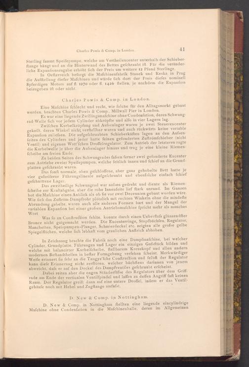 D. New& Comp. in Nottingham ftellten eine liegende ein cylindrige Mafchine ohne Condenfation in die Mafchinenhalle, deren im Allgemeinen