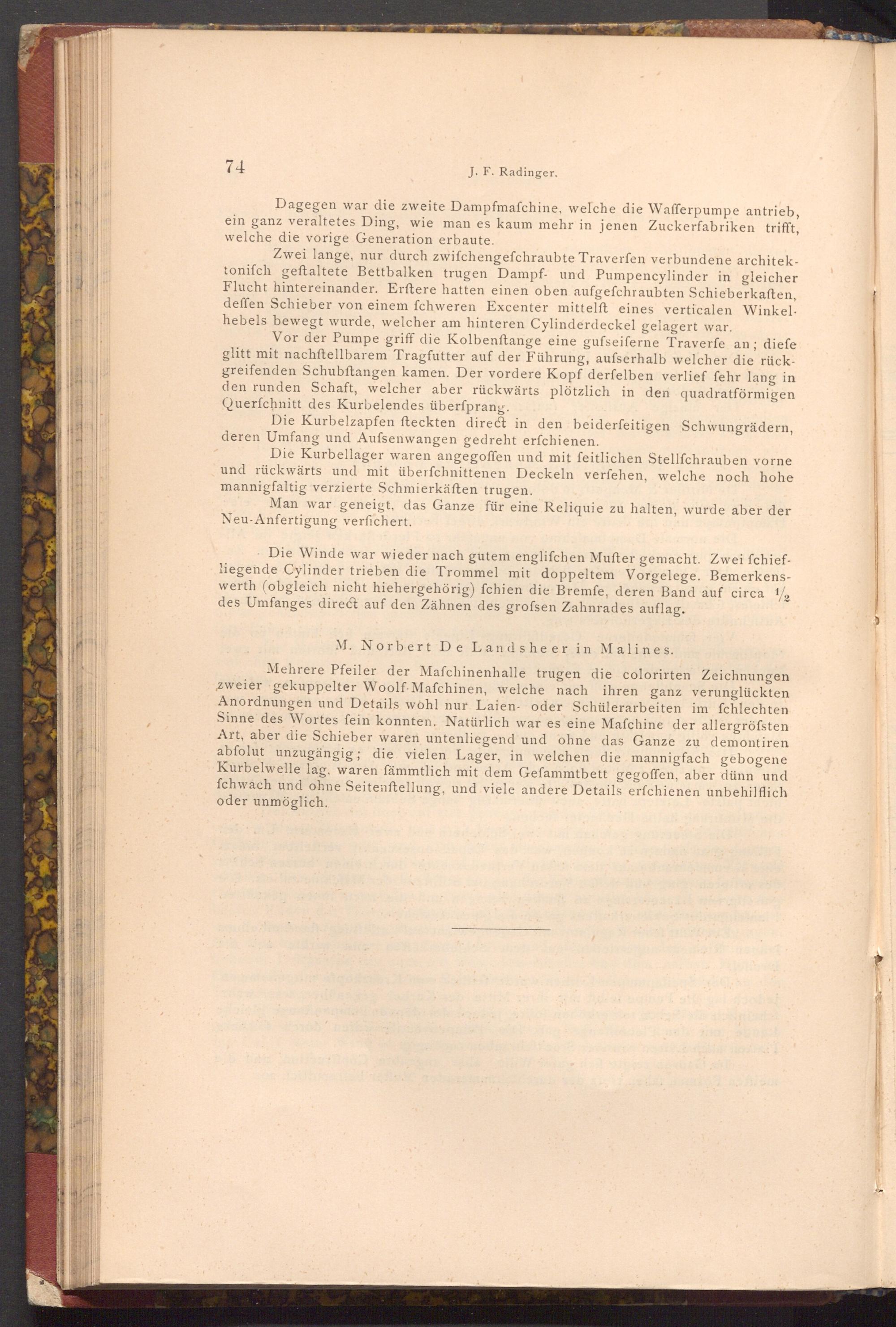 Dagegen war die zweite Dampfmafchine, welche die Wafferpumpe antrieb, ein ganz veraltetes Ding, wie man es kaum mehr in jenen Zuckerfabriken trifft, welche die vorige Generation erbaute.