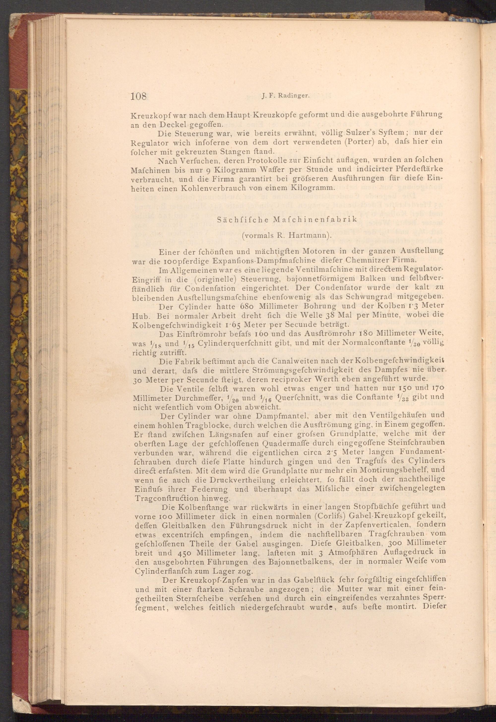 Einer der fchönften und mächtigften Motoren in der ganzen Ausftellung war die 100pferdige Expanfions- Dampfmafchine diefer Chemnitzer Firma.