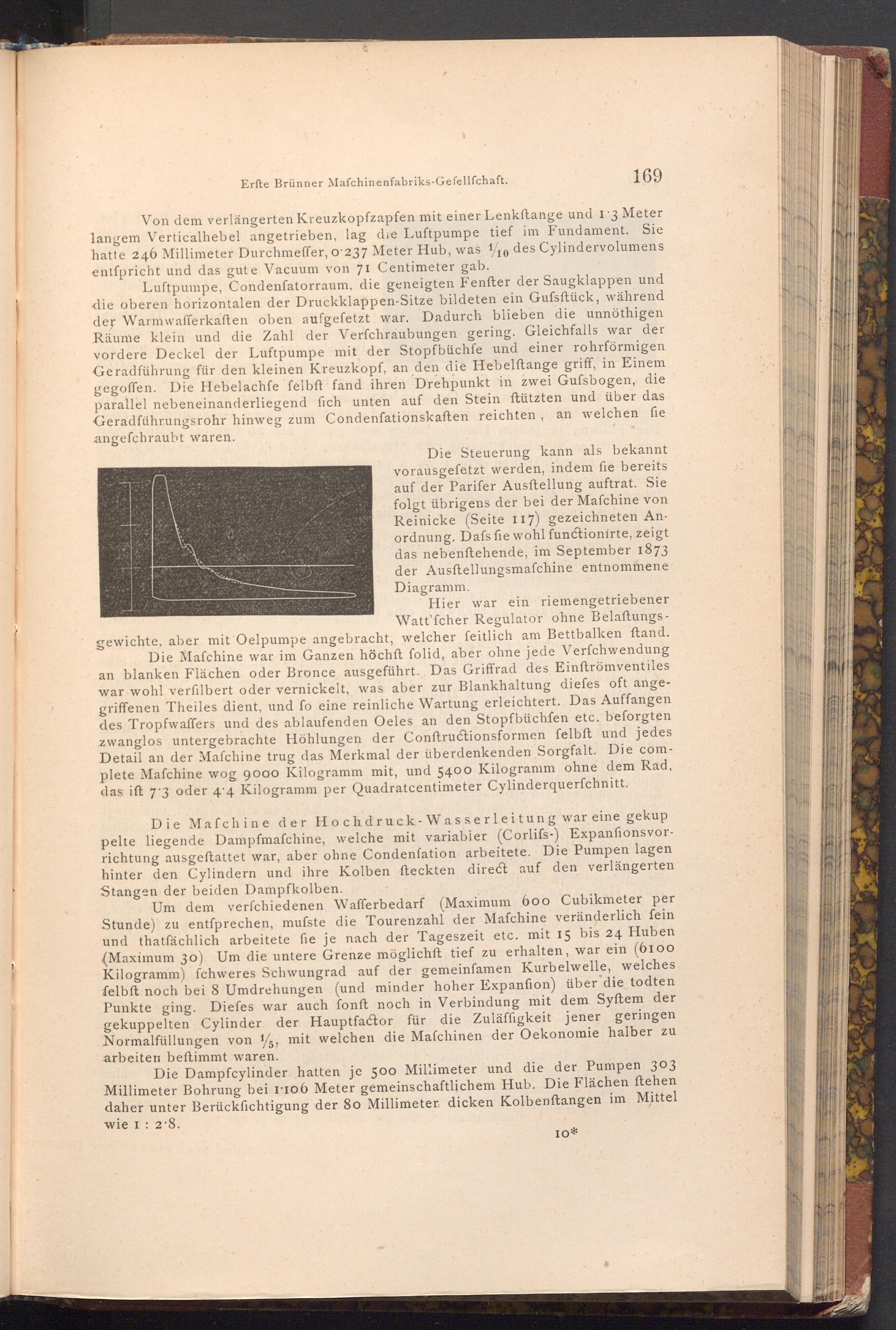Die Steuerung kann als bekannt vorausgesetzt werden, indem fie bereits auf der Parifer Ausftellung auftrat. Sie folgt übrigens der bei der Maſchine von Reinicke( Seite 117) gezeichneten Anordnung. Dafs fie wohl functionirte, zeigt das nebenftehende, im September 1873 der Ausstellungsmafchine entnommene Diagramm.