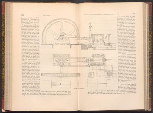 fer und einem Kolben, der o 32 Meter Hub 85 Mal in der Minute durchlaufen foll, was 0.9 Meter Kolbengefchwindigkeit per Secunde entspricht. An das Ende des Grundbalkens fchlofs fich der Vorderfanfch des Cylinders, deffen fernerer Körper