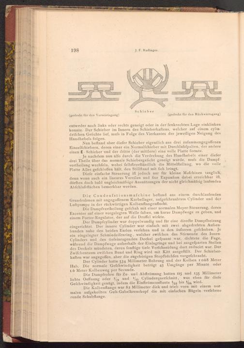 Die Condenfationsmafchine beftand aus einem durchlaufenden Grundrahmen mit angegoffenem Kurbellager, aufgefchraubtem Cylinder und der Luftpumpe in der rückwärtigen Kolbenftangenflucht.