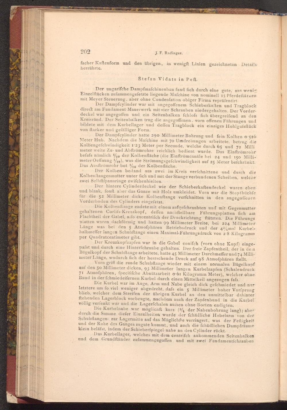Vorn griff die runde Schubftange wieder mit einem normalen Bügelkopf auf den 50 Millimeter dicken, 93 Millimeter langen Kurbelzapfen( Schalendruck 71 Atmoſphären, fpecififche Abnützarbeit o 61 Kilogramm Meter), welcher ohne. Bund in der fchmiedeifernen Kurbel durch einen Mittelkeil angezogen fafs.
