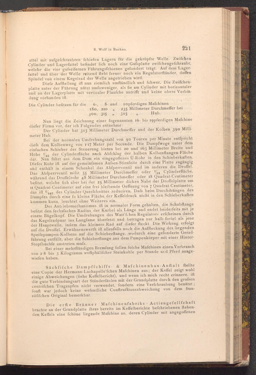 Sächfifche Dampffchiffs& Mafchinenbau- Anftalt ftellte eine Copie der Hermann- Lachapelle'fchen Mafchinen aus; der Keffel zeigt wohl einige Abweichungen( fiehe Keffelbericht), und wenn ich mich recht erinnere. iſt die gute Verbindungsart der Ständerfäulen mit der Grundplatte durch den grofsen centrifchen Tragzapfen nicht verwendet, fondern eine Verfchraubung benützt; fonft war jedoch keine wefentliche Conftructions abweichung von dem franzöfifchen Original bemerkbar.