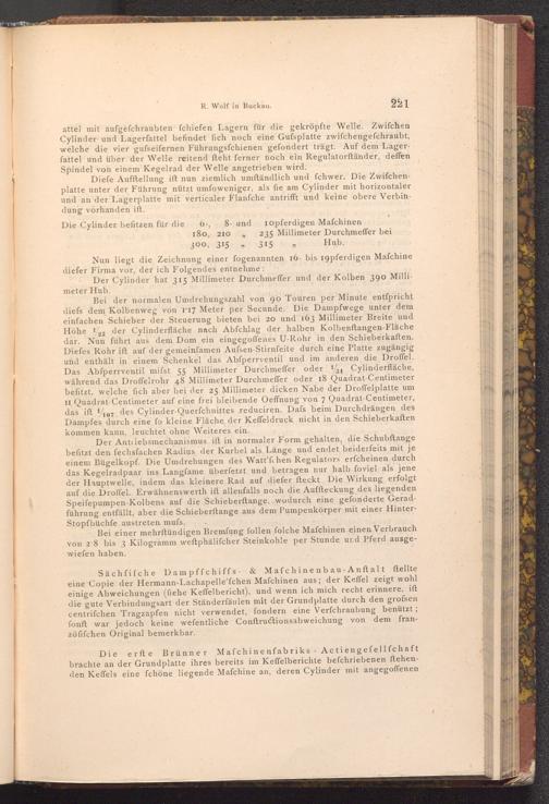 Nun liegt die Zeichnung einer fogenannten 16. bis 19pferdigen Mafchine diefer Firma vor, der ich Folgendes entnehme: