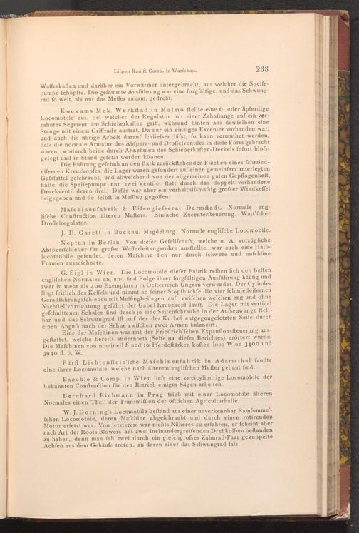 J. D. Garett in Buckau. Magdeburg. Normale englifche Locomobile. Neptun in Berlin. Von diefer Gefellſchaft, welche u. A. vorzügliche Abfperrfchieber für grofse Wafferleitungsrohre ausftellte, war auch eine Halblocomobile gefendet, deren Mafchine fich nur durch ſchwere und unfchöne Formen auszeichnete.