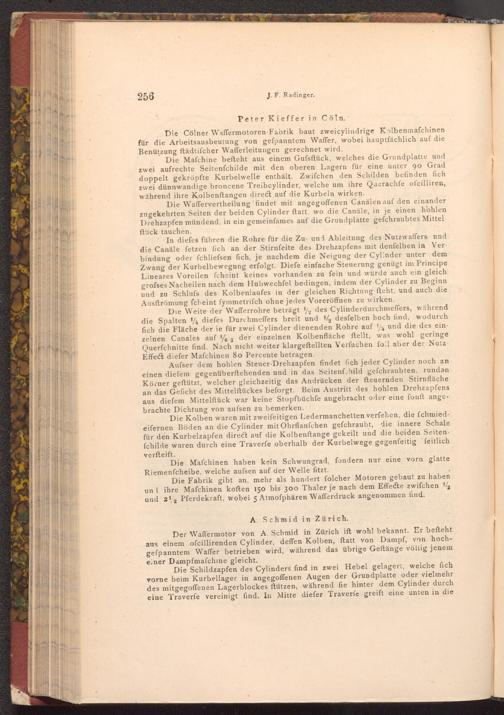 Die Fabrik gibt an, mehr als hundert folcher Motoren gebaut zu haben un ihre Mafchinen koften 150 bis 300 Thaler je nach dem Effecte zwifchen 1/ und 212 Pferdekraft, wobei 5 Atmoſphären Wafferdruck angenommen find.