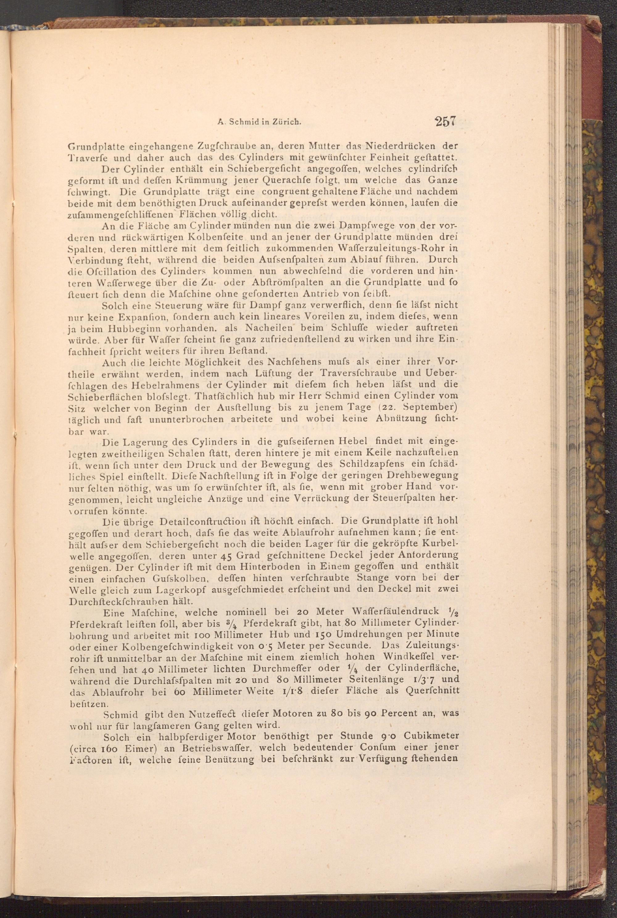 Solch ein halbpferdiger Motor benöthigt per Stunde 9.0 Cubikmeter ( circa 160 Eimer) an Betriebswaffer, welch bedeutender Confum einer jener Factoren ift, welche feine Benützung bei befchränkt zur Verfügung stehenden