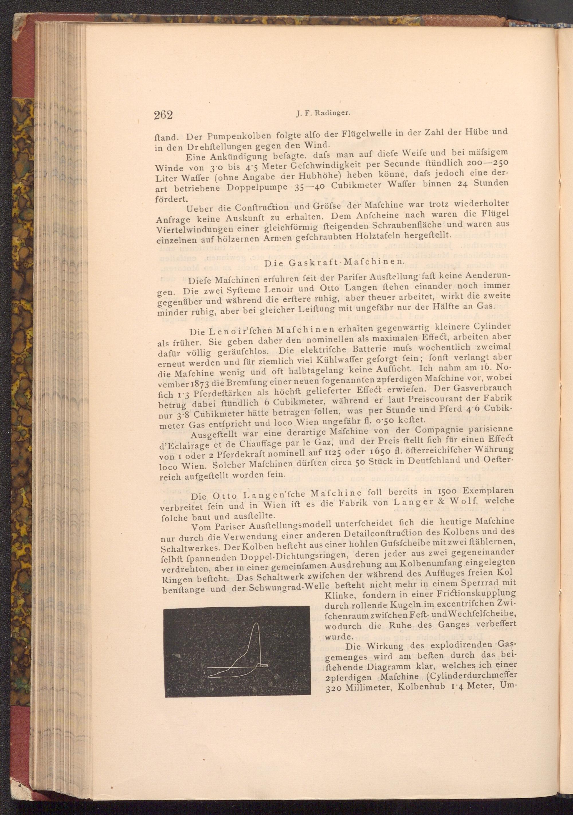 Die Wirkung des explodirenden Gasgemenges wird am beften durch das beiftehende Diagramm klar, welches ich einer 2pferdigen Mafchine( Cylinderdurchmeffer 320 Millimeter, Kolbenhub 14 Meter, Um
