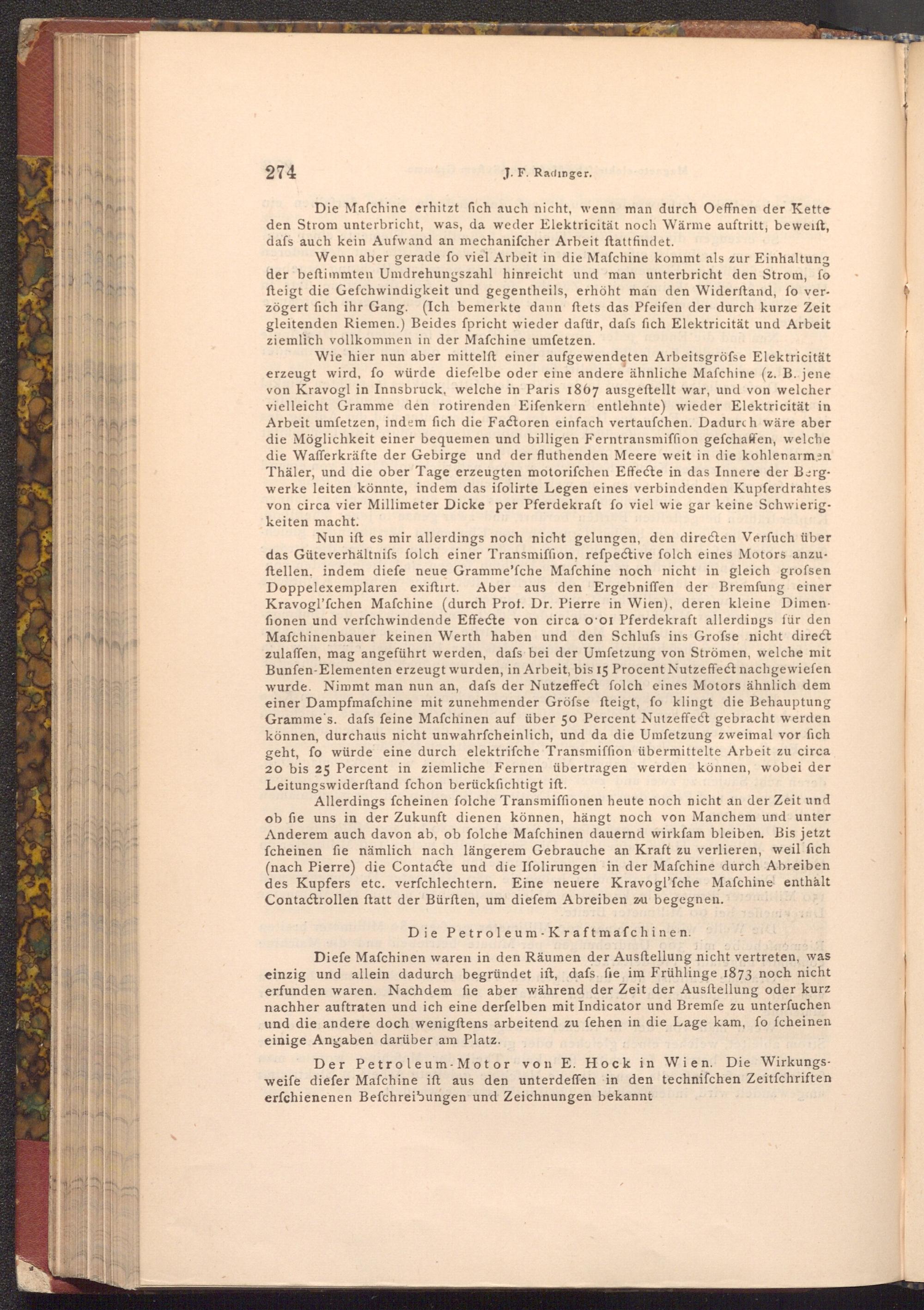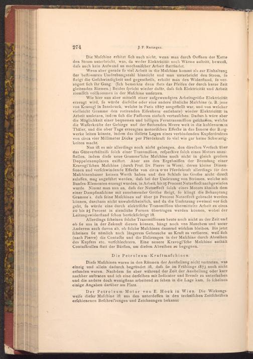 Der Petroleum Motor von E. Hock in Wien. Die Wirkungsweife diefer Mafchine ift aus den unterdeffen in den technifchen Zeitfchriften erfchienenen Befchreibungen und Zeichnungen bekannt