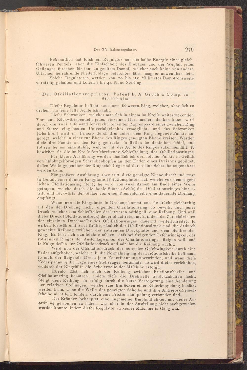 Der Ofcillationsregulator, Patent L. A. Groth& Comp. in Stockholm.
