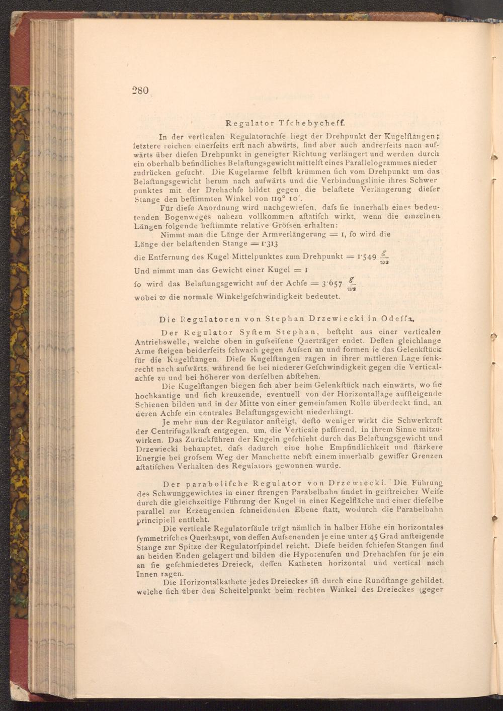 Je mehr nun der Regulator anfteigt, defto weniger wirkt die Schwerkraft der Centrifugalkraft entgegen, um, die Verticale paffirend, in ihrem Sinne mitzuwirken. Das Zurückführen der Kugeln gefchieht durch das Belaftungsgewicht und Drzewiecki behauptet, dafs dadurch eine hohe Empfindlichkeit und ftärkere Energie bei grofsem Weg der Manchette nebft einem innerhalb gewiffer Grenzen aftatifchen Verhalten des Regulators gewonnen wurde.
