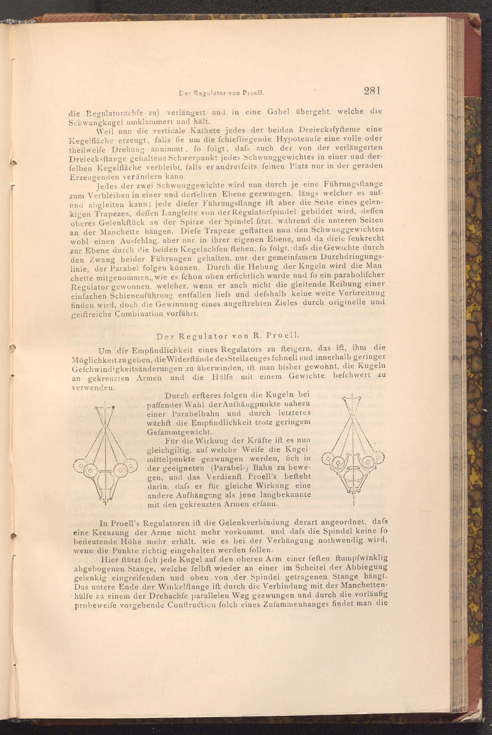 281 die Regulatorachfe zu) verlängert und in eine Gabel übergeht, welche die Schwungkugel umklammert und hält.