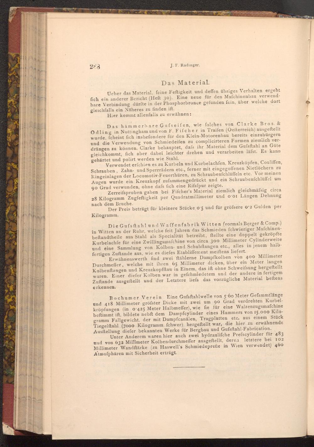 Zerreifsproben gaben bei Fifcher's Material ziemlich gleichmäfsig circa 28 Kilogramm Zugfeftigkeit per Quadratmillimeter und o o1 Längen Dehnung nach dem Bruche.